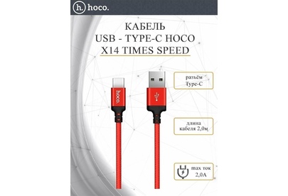HOCO X14 "Times speed" USB-Type-C 2A 2М красный/черный