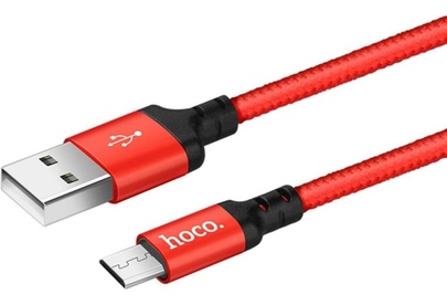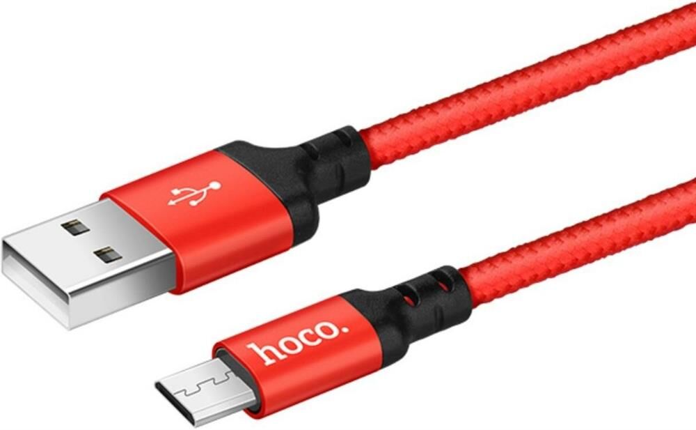 HOCO X14/ USB кабель Micro/ 2m/ 1.7A/ Нейлон/ Red&Black
