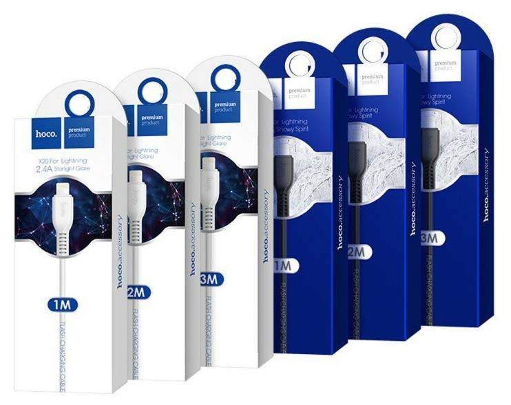HOCO X20 Дата-кабель USB - Lightning 2М 2.0A круглый белый