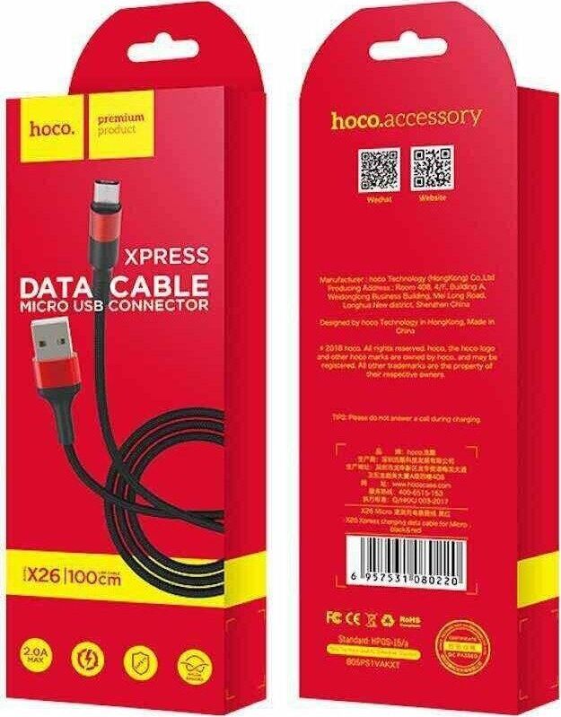 HOCO X26 "Xpress" USB-microUSB 2A 1M красный