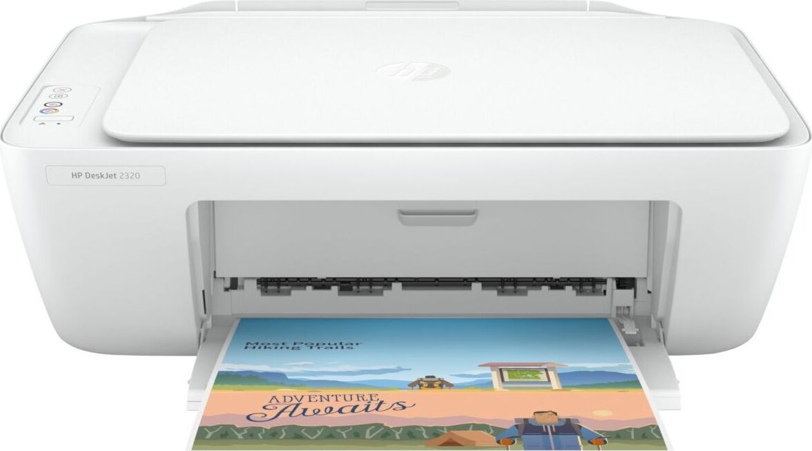 МФУ HP DeskJet 2320,< br> HP 305, стартовый картридж, черный,< br> HP 305, стартовый картридж, трехцветный,< br> листовка с нормативными требованиями,< br> руководство по установке,< br> справочное руководство,< br> кабель питания.