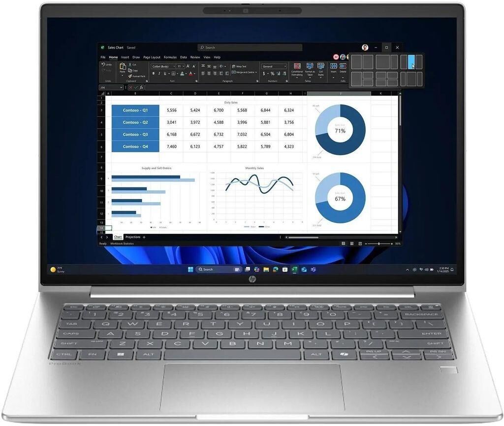 HP Ноутбук ProBook 4 G1i 14", Intel Core Ultra 5 225U 1.3ГГц, 12-ядерный, 16ГБ 512ГБ SSD, Intel Grap