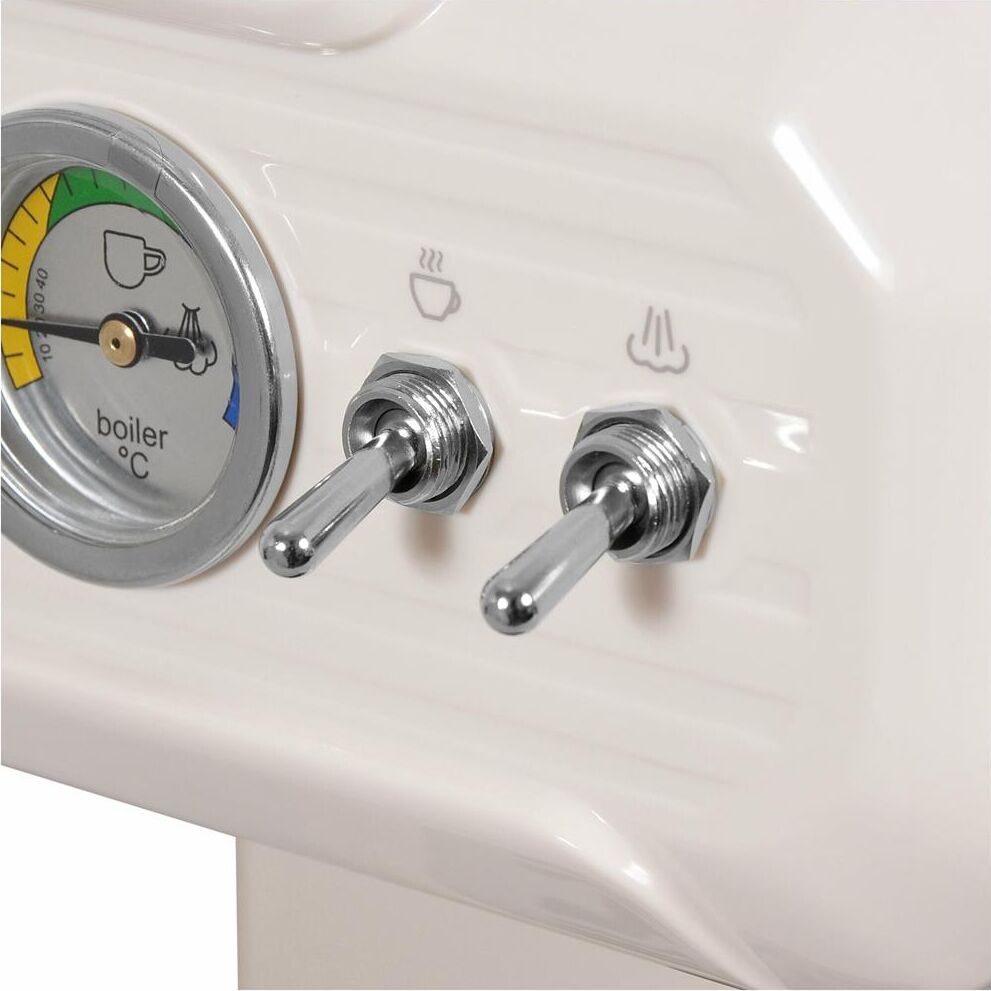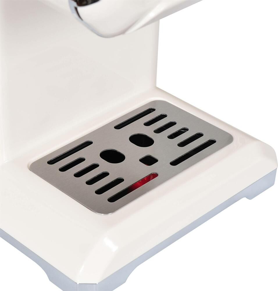 Тип кофеварки эспрессо Используемый кофе молотый Тип нагревателя бойлер Мощность 850 Вт Давление помпы 20 Бар Резервуар для воды 1.5 л Приготовление эспрессо возможно Функция подачи пара Приготовление двух порций одновременное Капучинатор Тип капучинатора ручной Тип управления механическое Панель для подогрева чашек Индикатор нагрева Пресс для кофе для утрамбовки молотого кофе Поддон для капель съемный Индикатор уровня воды Резервуар для воды съемный Материал корпуса металл/пластик Цвет бежевый / серебристый Гарантия 24 мес.