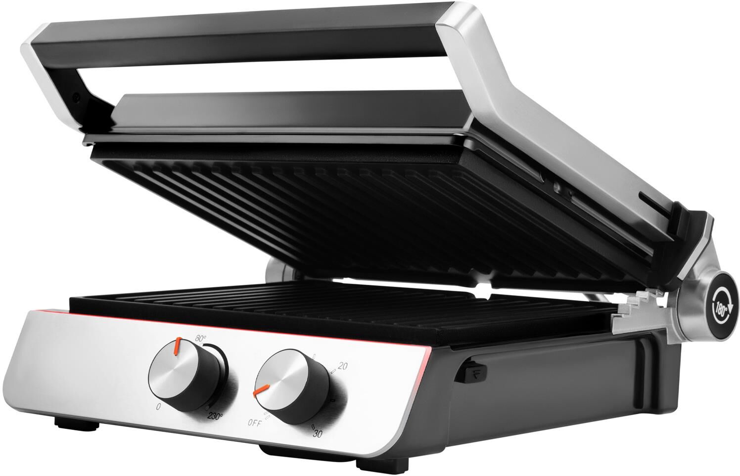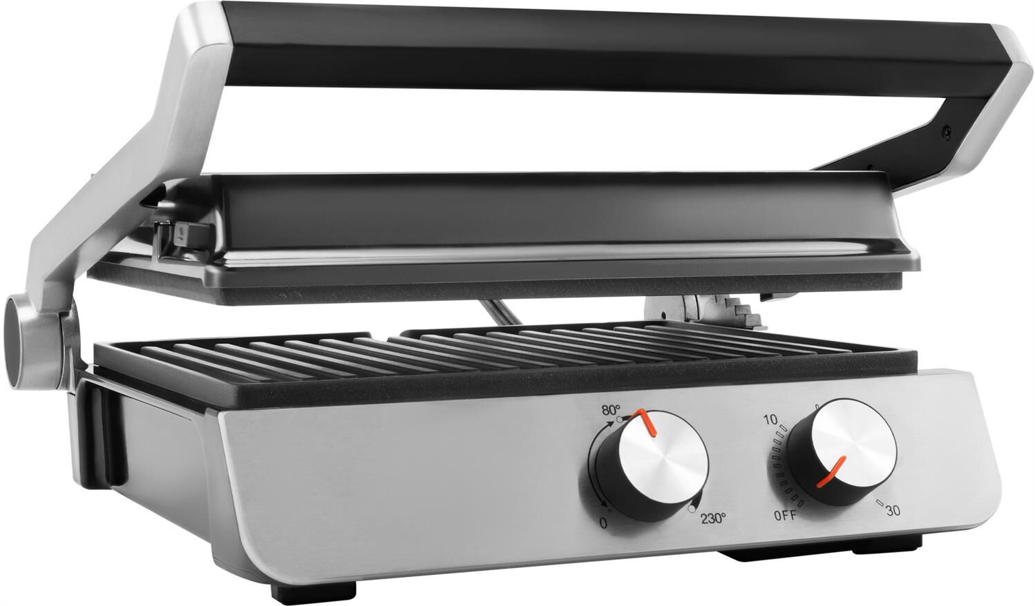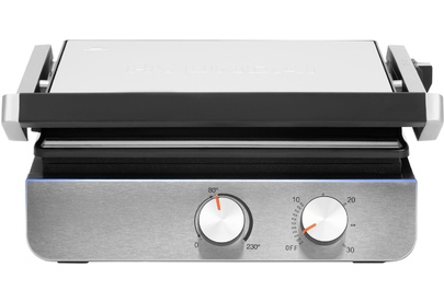 Тип управления механическое Мощность (макс) 2200 Вт Тип нагревательного элемента ТЭН Установка температуры приготовления Установка времени приготовления Антипригарное покрытие нагревательных частей Длина рабочей поверхности 23 см Ширина рабочей поверхности 29 см Съемные формы Цвет черный Материал корпуса нержавеющая сталь/пластик Длина электрокабеля 0.8 м Лоток для сбора жира Фиксация в закрытом состоянии Индикатор включения Индикатор нагрева Раскрытие на 180 градусов Верхняя крышка имеет «плавающий» фиксатор и адаптирует свое положение под любой продукт с максимальным касанием к панели нагрева Срок гарантии 24 мес.