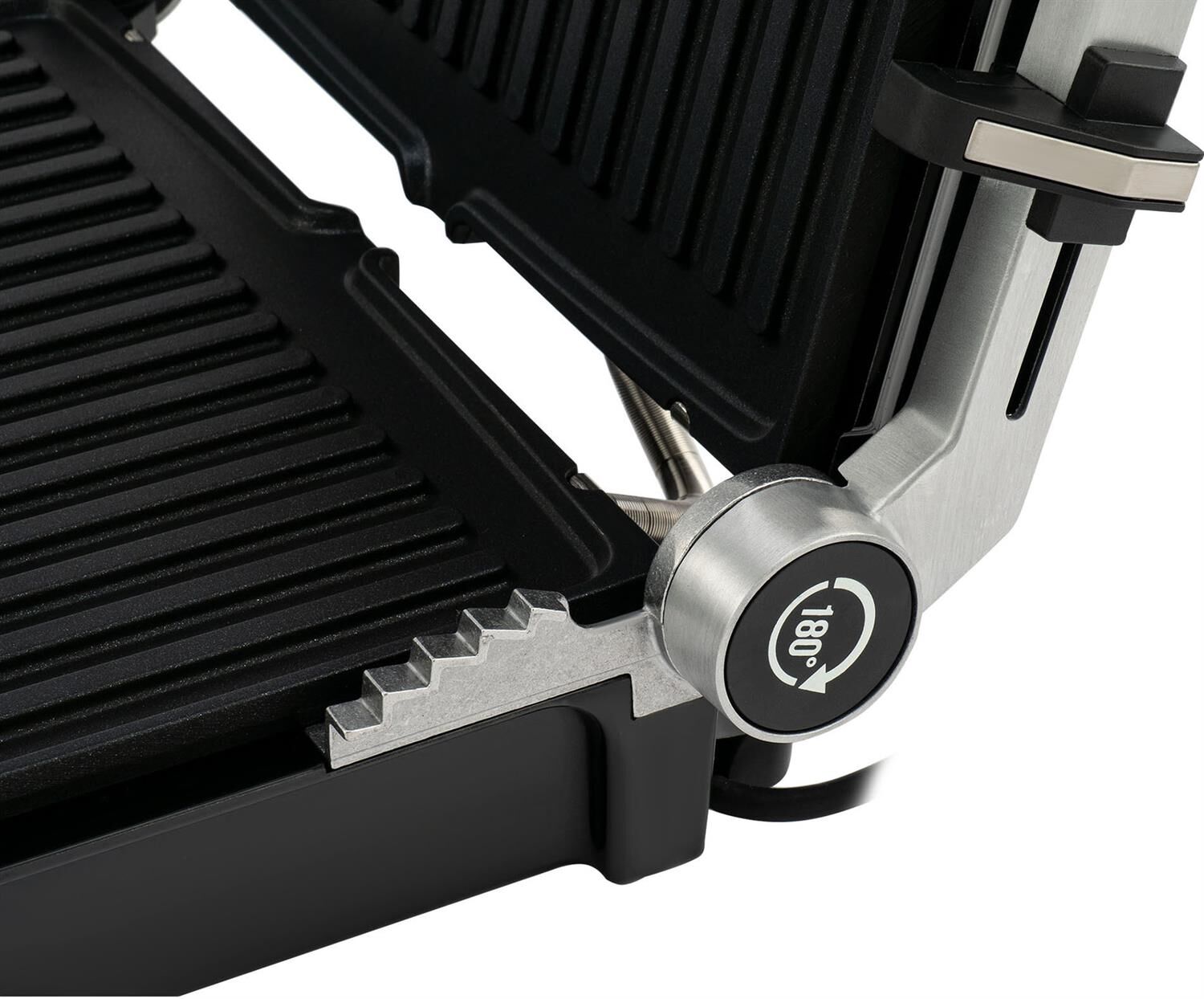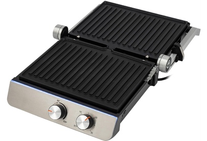 Тип управления механическое Мощность (макс) 2200 Вт Тип нагревательного элемента ТЭН Установка температуры приготовления Установка времени приготовления Антипригарное покрытие нагревательных частей Длина рабочей поверхности 23 см Ширина рабочей поверхности 29 см Съемные формы Цвет черный Материал корпуса нержавеющая сталь/пластик Длина электрокабеля 0.8 м Лоток для сбора жира Фиксация в закрытом состоянии Индикатор включения Индикатор нагрева Мойка рабочих поверхностей в посудомоечной машине Раскрытие на 180 градусов Верхняя крышка имеет «плавающий» фиксатор и адаптирует свое положение под любой продукт с максимальным касанием к панели нагрева. Срок гарантии 24 мес.