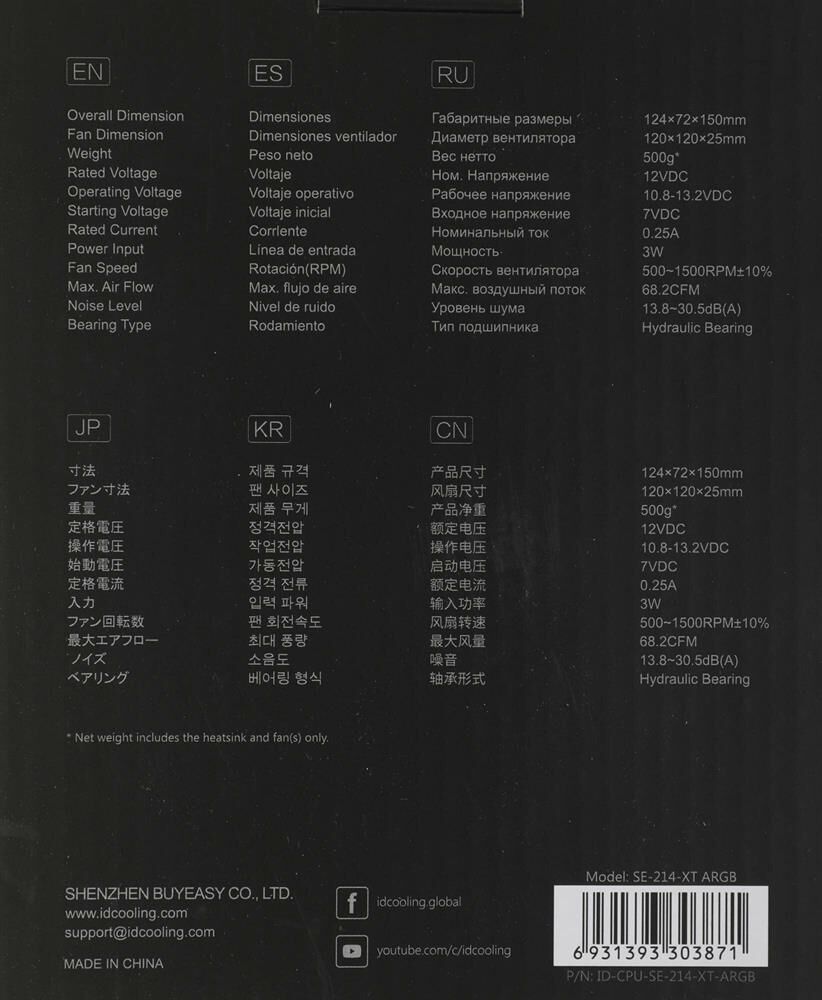 ID-COOLING Вентилятор для процессора SE-214-XT Black (Soc-AM4/115x/1200/1700, Al+Cu, PWM 1800rpm, 35
