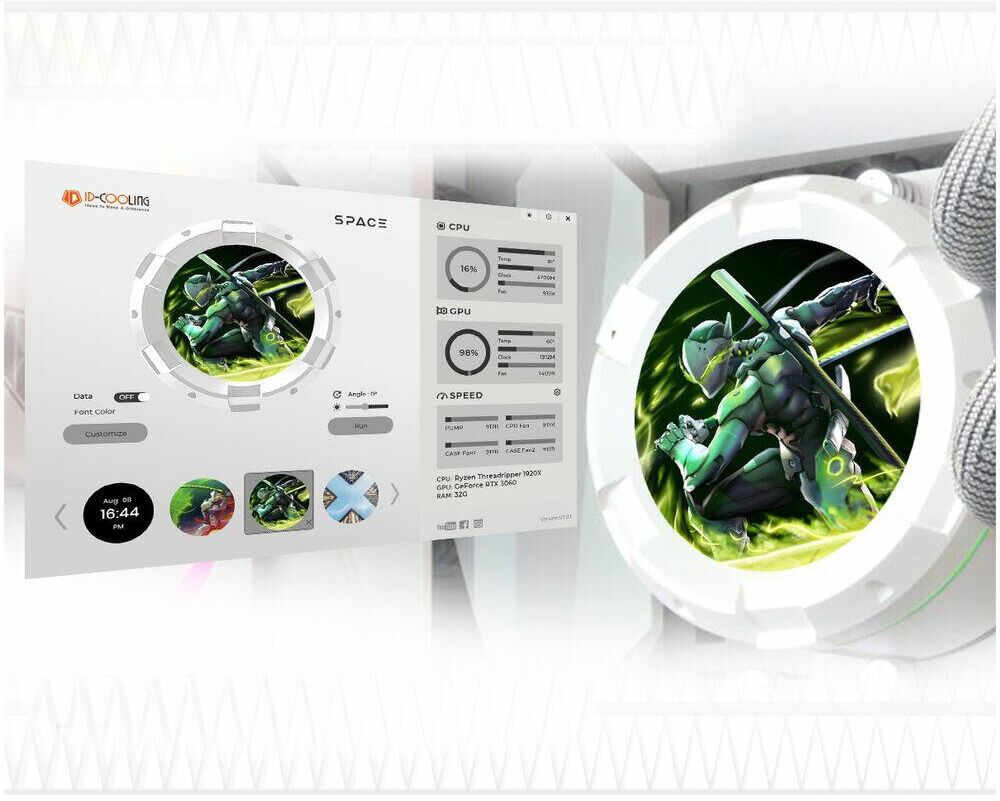 ID-COOLING Вентилятор SL240 WHITE /LCD SCREEN /300W /all Intel /all AMD