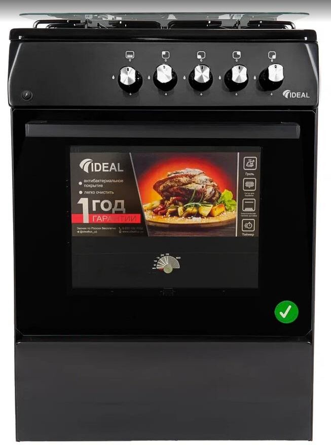 Габариты плиты (ШхВхГ), см: 60х85х60; Объем духовки: 65 литров; Газовые конфорки 4 шт; Полный Газ контроль плиты; Стеклянная крышка рабочего стола; Электроподжиг рабочего стола; Стальная решетка рабочего стола; Духовка газовая; 2-слойное остекление дверцы духовки; Биокерамическая эмаль духовки; Термостат духовки; Никелированная решетка духовки; Эмалированный противень - 2 штуки