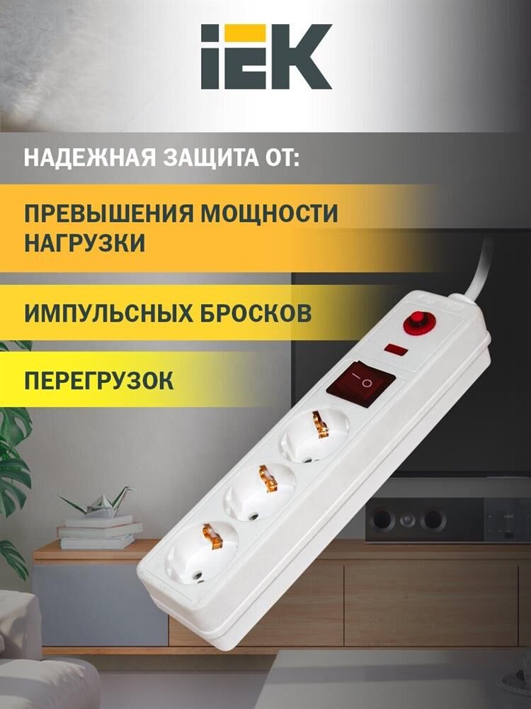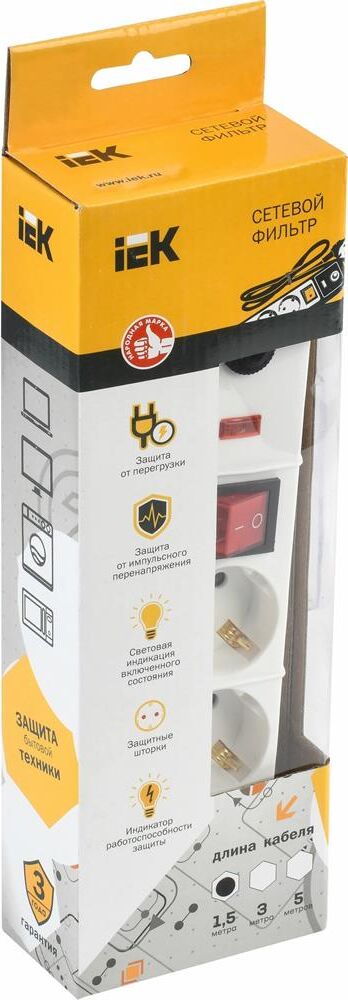 IEK Сетевой фильтр СФ-03К, 1.5м, белый [wfp10-16-03-01-n]