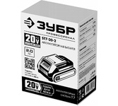 Напряжение: 20. Емкость: 2. Вес: 330. Тип аккумулятора: Li-Ion. Устройство аккумулятора: Слайдер. Назначение: для электроинструмента. Функция быстрой зарядки: ДА. Совместимость: для Зубр DL-20 A5, DB-20 A5, DL-201, DB-201, DB-211, DBS-201, GB-250, GVB-250, GB-500, AB-125. Циклов заряд/разряд: 500. Количество аккумуляторов в комплекте: 1. Габариты упаковки (ед) ДхШхВ: 0.12x0.08x0.06. Вес упаковки (ед): 0.2. Страна производства: Китай. Гарантия: 12 мес.. Назначение: для электроинструмента. Напряжение: 20 В. Вес: 330 грамм. Тип аккумулятора: Li-Ion. Емкость: 2 Ач. Устройство аккумулятора: Слайдер