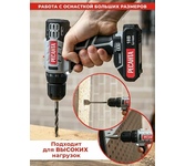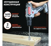 Мягкий крутящий момент (Нм) 15. максимальный диаметр шурупа 6,3X60. Индикатор заряда аккумулятора Да. Тип аккумуляторной батареи Li-Ion. Расширенная гарантия Да. Количество аккумуляторов в комплекте 2. Количество ступеней регулировки крутящего момента 21+1. Регулировка оборотов двигателя Да. Вид упаковки Пластиковый кейс. Габариты в упаковке (ДхШхВ, см) 31x28,5x12. Тип двигателя щеточный. Вес инструмента в сборе без упаковки и аксессуаров (кг) 1,04. Число оборотов на 1 скорости (об/мин) 0-400. Число оборотов на 2 скорости (об/мин) 0-1500. Реверс Да. Блокировка шпинделя Да. Время зарядки (ч) 1. Диаметр патрона (мм) 10. Емкость аккумулятора (Ач) 2. Количество скоростей 2. Максимальный крутящий момент (Нм) 28. Подсветка рабочей зоны Да. Тормоз двигателя Да. Напряжение аккумулятора (В) 14.