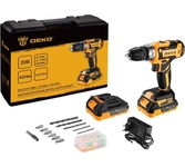 Макс. диаметр сверления дерево/металл: 28/10 мм Размер зажимаемой оснастки: 1-10 мм Число ступений крутящего момента: 18+1 Макс. крутящий момент: 42 Нм Комплектация: 1 шт дрель-шуруповерт аккумуляторная 2 шт АКБ 1 шт зарядное устройство 6 шт сверла 6 шт биты 1 шт магнитный удлинитель 50 шт крепеж 1 шт руководство по эксплуатации 1 шт кейс