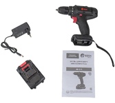 21В; Li-Ion; 2.0Ач; 2 скорости: 0-400/0-1500об/мин; 10мм; 24Нм; 25+1, БЗП, 1 шт АКБ, 1 шт ЗУ, подсветка, реверс
