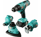 Крепление рабочего шлифматериала: липучка. Регулировка частоты колебаний: нет. Сегментированный пильный диск в комплекте: нет. Пильное полотно в комплекте: есть. Дельташлифпластина в комплекте: есть. Дополнительно в комплекте: Многофункциональный инструмент 4 в 1 для домашнего использования. Насадка-шуруповерт, насадка-сабельная пила, насадка для шлифования, насадка-реноватор, набор бит (6 шт.) и адаптер, набор сверл (6 шт.), шлифовальная бумага (4 шт.), насадка для реноватора (шабер, пила).. Рукоятка с мягкой накладкой: есть. Цвет: синий. Дополнительный цвет: черный. Тип электропитания: от аккумулятора. Количество аккумуляторов в комплекте: 2. Зарядное устройство в комплекте: есть. Габариты упаковки (ед) ДхШхВ: 0.435x0.135x0.335. Тип электрического двигателя: бесщеточный. Страна производства: Китай. Класс инструмента: бытовой. Защита двигателя от перегрева: нет. Защита от непреднамеренного включения: нет. Кейс в комплекте: есть. Комплект поставки: Аккумуляторный инстр., АКБ - 2 шт., ЗУ, насадка-шуруповерт, н