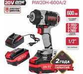 P.I.T. Гайковерт IMPACT аккум. бесщеточный PIW20H-600A/2 (20В, 600Нм, 1/2", 3ск, 0-2800уд/мин,2х4Ач)
