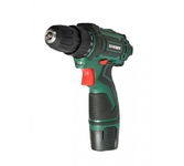 Аккумуляторная дрель с функцией шуруповёрта предназначена для сверления отверстий в цветных и чёрных металлах, пластмассах, дереве и других строительных материалах (при установке сверла). Кроме того инструмент можно использовать для завинчивания и отвинчивания винтов, шурупов, саморезов при монтажных и строительных работах, как в производственных, так и бытовых условиях (при установке соответствующих бит). Тип аккумулятора-Li-Ion, в комплекте 2 аккумулятора, количество скоростей работы -2. Материал корпуса-пластик. Тип двигателя инструмента-щеточный. Тип патрона-быстрозажимной. Максимальный крутящий момент (Н/м)-23.