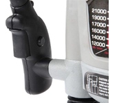 Ход головки, мм 60, Размер цанги, мм 6/8/12, Потребляемая мощность, Вт 1600, Регулировка частоты вращения, Плавный пуск, Подключение пылесоса, Прорезиненная рукоятка.
