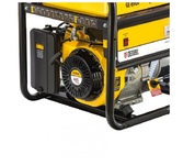 Особенности Генератор применяется в качестве аварийного или автономного источника электроэнергии для питания мощных бытовых электроприборов, электроинструмента, небольших станков, сварочных аппаратов. Оптимальное соотношение мощности двигателя и электрогенератора обеспечивает стабильную работу на номинальной мощности. Оснащен двигателем с верхним расположением клапанов [OHV], что значительно увеличивает ресурс, снижает выхлоп и уровень шума. Датчик контроля масла исключает запуск и работу генератора при отсутствии или низком уровне масла в картере. Синхронный электрогенератор с системой автоматической регулировки обеспечивает стабильное выходное напряжение и частоту тока. Выход 12 вольт позволяет подзарядить автомобильный аккумулятор в экстренном случае. Усиленная передняя панель с утопленными элементами управления снижает риск механических повреждений. Транспортировочный комплект для перемещения на небольшие расстояния поставляется вместе с генератором. Технические данные Двигатель: 4т, OHV, АИ-92, 420 сс, 1