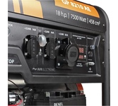 Объем двигателя, см3 485, Макс. мощность, л.с. 18, Тип топлива АИ-92, Объём бака, л 25, Тактность двигателя 4-х тактный, Номинальное напряжение, В 220, Мощность ном/макс, кВт 7.0/7.5, Расход топлива, г/кВт 490, Уровень шума, dB 80, Стартер ручной/электро/автозапуск +АКБ, Вольтметр электронный мультидисплей, Розетки 2 евро 16А, 1 евро 32А, Комплект для транспортировки опция, Выход на 12B