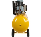 Профессиональный масляный компрессор с ременным приводом используется для работы с пневмоинструментом на небольших производствах, в ремонтных и сервисных мастерских. Производительности 950 л/мин (57 м3/ч) достаточно для пескоструйных, монтажных и строительных работ.  Быстросъемный штуцер (?") и кран с вентилем для подключения пневмоинструмента. Объем ресивера — 100 л. Отличается высоким ресурсом и малыми потерями выходной производительности. Рассчитан на длительное использование: ·    Цилиндр из ковкого чугуна и устойчив к износу ·    Увеличенные ребра охлаждения ·    Мощные моторы с медными обмотками увеличенной термостойкости ·    Блоки клапанов из высоколегированных сплавов устойчивы к перепадам температур и деформации ·    Картер помпы из ковкого чугуна с увеличенной толщиной стенок устойчив к вибрации ·    Ресиверы с увеличенной толщиной стенок для компенсации коррозии испытаны 1,5-кратным давлением. ·    Складчатый фильтр HEPA большой площади для э