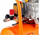 Поршневой безмасляный компрессор PATRIOT KDS 190 F10 (10 литров) для работы с пневмоинструментом. Безмасляный компрессор не требует установки маслоотделителей, подойдет для краскопульта и аэрографа. Подходит для использования в гараже, мастерской, во время ремонта или строительства. Компрессор с рабочим давлением 8 бар очень тихий для своей категории, всего 70 дБА. Двухполюсной высокооборотистый двигатель с термозащитой обладает высокой производительностью. Двухцилиндровый компрессор способен справляться с интенсивными задачами. Увеличенные ребра охлаждения способствуют эффективному отводу тепла во время длительной непрерывной работы. В компрессоре предусмотрены функции защиты от перегрева, превышения тока, а также есть предохранительный и электромагнитный клапаны. Два выхода: быстросъемный типа «RAPID» с запирающим ниппелем и «елочка» с шаровым краном. Два манометра основной на давление в ресивере и дополнительный с редуктором для предустановки нужного давления. Удобная рукоятка и прорезиненные колеса для уд