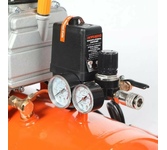 Компрессор пневматический безмасляный малошумный торговой марки DENZEL предназначен для обеспечения сжатым атмосферным воздухом оборудования, аппаратуры и инструмента, применяемого в бытовых целях. Использование компрессора позволяет значительно сэкономить электроэнергию, а также повысить эффективность работы. Компрессор способен производить 165 л/мин сжатого до 8 атм воздуха, который нагнетается в ресивер общим объемом 24 литра. Особенности Напряжение питания 230 В Двигатель асинхронный однофазный Манометр для контроля давления сжатого воздуха Реле давления, осуществляющим запуск/остановку в зависимости от настроек Защитный клапан Функциия автозапуска при понижении давления в ресивере ниже 6 атм Простота и удобство перемещения Преимущества Работа без масла Защита от перегрева Предохранительный клапан высокого давления Коннекторы для быстрого подключения пневмоинструмента Rapid (Евро) Резиновые опоры для снижения вибрации Низкий уровень шума Комплектность Компрессор воздушный – 1 шт. Колесо с крепежом – 2 шт.