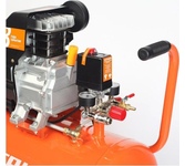 Компрессор пневматический торговой марки DENZEL предназначен для обеспечения сжатым атмосферным воздухом оборудования, аппаратуры и инструмента, применяемого в бытовых целях. Использование компрессора позволяет значительно сэкономить электроэнергию, а также повысить эффективность работы. Компрессор способен производить 230 л/мин сжатого до 8 атм воздуха, который нагнетается в ресивер общим объемом 24 литров. Особенности Напряжение питания 230 В Двигатель асинхронный однофазный Манометр для контроля давления сжатого воздуха Реле давления, осуществляющим запуск/остановку в зависимости от настроек Защитный клапан Функция автозапуска при понижении давления в ресивере ниже 6 атм Простота и удобство перемещения Преимущества Эффективная система смазки Защита от перегрева Защита от перегрузки Предохранительный клапан высокого давления Коннекторы для быстрого подключения пневмоинструмента Rapid (Евро) Резиновые опоры для снижения вибрации Металлические воздушные фильтры с бумажным картриджем Комплектность Компрессор в