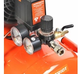 Давление 8.1 Бар. Производительность 200 л/мин. Объем ресивера 24 л. Мощность 1500 Вт. Напряжение 220 В. Привод компрессора прямой. Коннектор быстросъем. Колеса 2. Механический клапан сброса давления. Шумозащитный пластиковый кожух. Регулировка давления на выходе позволяет настраивать давление воздуха зависимости от используемого пневмоинструмента. Самовосстанавливающийся термопредохранитель.
