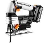 Напряжение 20 В. Емкость аккумулятора 2 Ач. Скорость холостого хода 0-2400 об/мин. Ход пилки 19 мм. Макс. глубина реза дерева 56 мм. Макс. глубина реза металла 6 мм.