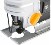 Лобзик оснащен удобной, эргономичной прорезиненной рукояткой, наличие маятникового движения с направляющим роликом, позволяет производить быстрые и при этом ровные пропилы. Литая алюминиевая подошва регулируется под разными углами. Есть защитная пластиковая накладка для подошвы. Возможно подключение пылесоса. Регулировка скорости позволяет использовать лобзик для реза различных материалов. Лобзик также оснащен подсветкой. Удобству работы способствует длинный резиновый кабель. Основные преимущества: Максимальная глубина пропила в дереве: до 135 мм Максимальная глубина пропила в металле: 10 мм Литая алюминиевая подошва Длинный резиновый кабель Основные характеристики: Тип: лобзик Питание: сеть Параметры сети: 230/50 В/Гц Мощность: 800 Вт Частота хода: 800-2600 х/м Максимальная глубина пропила в дереве: 135 мм Максимальная глубина пропила в металле: 10 мм Возможно подключение пылесоса: да Регулировка скорости: да Подсветка: да Кейс: да Вес: 2,8 кг Цвет: синий/черный Комплектация: Пилка по дереву, ключ 2 шт, кейс