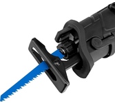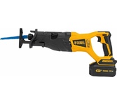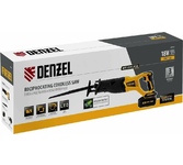 Сабельная аккумуляторная пила Denzel BRC-120 28460 с бесщеточным двигателем работает от аккумулятора Li-Ion с рабочим напряжением 18 В. Предназначена для распила фанеры, досок, ДСП, ДВП, пластика, а также для обрезки веток. Максимальная глубина пропила в древесине составляет 120 мм, в стали 10 мм. Оснастка совершает до 3100 ходов в минуту, что обеспечивает эффективную работу. Универсальный аккумулятор емкостью 4 А/ч, с интеллектуальной системой распознавания нагрузки, рассчитан на длительный срок службы. Он совместим со всеми инструментами единой платформы Denzel battery system 18V серии IB.Преимущества Надежность мощный бесщеточный двигатель обеспечивает высокую производительность, не требует обслуживания и отличается долговечностью. Регулировка частоты ходов можно выбрать оптимальный режим в зависимости от твердости материала. Защита двигателя в случае перегрузки пила выключается, что позволяет предотвратить поломку.