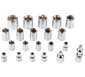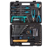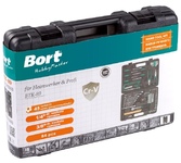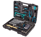 1/2’’ DR: Торцевые головки, 20 шт.: 8-24, 27, 30, 32 мм; Торцевые головки Е-профиль внешний Torx, 5 шт.: Е-11, Е-12, Е-14, Е-16, Е-18; Торцевые головки свечные, 2 шт.: 16 и 21 мм; Удлинители, 2 шт.: 125 и 250 мм; Удлинитель с шаром 50 мм; Трещоточная рукоятка; Вороток Т-образный 250 мм; Шарнир карданный. 1/4’’ DR: Торцевые головки, 9 шт.: 4, 4.5, 5, 5.5, 6, 7, 8, 9, 10 мм; Торцевые головки Е-профиль внешний Torx, 6 шт.: Е-4, Е-5, Е-6, Е-7, Е-8, E-10; Шарнир карданный; Вороток Т-образный 130 мм; Трещоточная рукоятка, 36 зубцов; Адаптер для вставок (бит); Отверточная рукоятка 150 мм; Вставки (биты), 20 шт.: Шестигранные Нех, 8 шт.: 3, 4, 5, 6, 7, 8, 10, 12 мм; Torx, 8 шт.: Т15, Т20, Т25, Т27, Т30, Т40, Т45, Т50; Spline, 4 шт.: М6, М8, М10, М12 Гибкий удлинитель 145 мм; Ключи комбинированные, 14 шт.: 8, 10, 11, 12, 13, 14, 15, 16, 17, 18, 19, 21, 22, 24 мм; Ключи разрезные, 4 шт.: 8х10, 11х13, 12х14, 17х19 мм; Ключ разводной 8’’ (200 мм); Отвертки, 4 шт Ручка магнитная; Пассатижи 7”