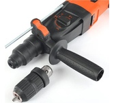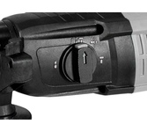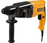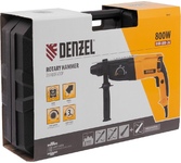 Электрический перфоратор Denzel RHH-800-26 26607 мощностью 800 Вт, с патроном под хвостовик SDS-plus, развивает энергию удара 3 Дж и способен работать в 3-х режимах: сверление, сверление с ударом и долбление + регулировка углового положения оснастки. Используется для получения отверстий в бетоне, камне, кирпичной кладке, штробления стен, а также сверления металла, пластика, древесины и других материалов. Максимальный диаметр сверления в бетоне составляет 18 мм, в древесине — 30 мм, в стали — 13 мм. Инструмент будет полезен любителям и профессионалам при выполнении ремонтно-строительных работ.ПреимуществаНастройка оптимального режима — скорость вращения шпинделя и частота ударов плавно регулируются в диапазоне 0-1180 об/мин и 0-5500 уд/мин соответственно.Реверс — смена направления вращения оснастки облегчает извлечение застрявшего бура.Точность выполняемых работ — ограничитель глубины сверления позволяет получать одинаковые отверстия.