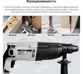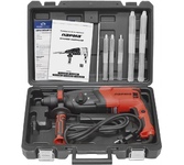 Потребляемая мощность: 950. Выходная мощность: 510. Крутящий момент: 35. Количество скоростей: односкоростной. Наличие функции "сверление": есть. Наличие функции "сверление с ударом": есть. Наличие функции "удар без сверления": есть. Максимальная энергия удара: 3.2. Количество патронов в комплекте: один. Тип основного патрона: SDS-plus. Максимальный диаметр сверления (сталь): 13. Максимальный диаметр сверления (дерево): 30. Наличие функции "реверс": есть. Наличие предохранительной муфты: нет. Встроенный фонарик: нет. Дополнительная рукоятка: есть. Ограничитель глубины сверления: есть. Жесткий кейс в комплекте: есть. Вес инструмента: 3.2. Длина сетевого кабеля: 2.2. Длина инструмента: 430. Высота инструмента: 300. Комплект поставки: Перфоратор, ограничитель глубины сверления, плоское долото, пика-долото, набор буров, руководство по эксплуатации, гарантийный талон, кейс.. Тип электропитания: от электросети. Габариты упаковки (ед) ДхШхВ: 0.42x0.11x0.3. Вес упаковки (ед): 7.5. Страна производства: Китай. Гарантия