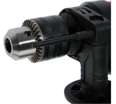 1100 Вт, число оборотов на холостом ходу 0-3000 об/мин, диаметр сверления сталь/дерево/бетон 10/25/13 мм, патрон ключевой 1,5-13 мм, вес - 2.3 кг.