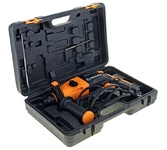 Макс. количество ударов, уд/мин 44800, Частота вращения, об/мин 0-2800, Макс. диаметр сверления (металл/бетон/дерево), мм 13/13/25, Тип патрона быстрозажимной, Диаметр патрона, мм 13, Регулировка скорости, положений, Потребляемая мощность, Вт 710, Наличие реверса, Режим сверления с ударом, Защита от пыли, Прорезиненная рукоятка, Прорезиненный морозостойкий кабель.