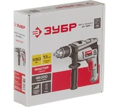 Ударная дрель Зубр МАСТЕР ДУ-550 ЭР работает с такими материалами, как дерево, сталь, кирпич, легкий бетон. Ключевой патрон предусматривает надежное закрепление оснастки. Реверс помогает освободить застрявшее сверло или, например, отвернуть крепко засевший шуруп. Регулировка числа оборотов позволяет подобрать нужную частоту вращения в зависимости от вида работ и материала. Наличие функции удара позволяет сверлить бетон диаметром до 13 мм. Технические характеристики Зубр ДУ-550 ЭР Мах диаметр сверления (дерево), мм 20 Max диаметр сверления (металл), мм 10 Мощность, Вт 550 Наличие подсветки нет Наличие реверса да Наличие удара да Длина кабеля, м 2 Вес, кг 1,6 Регулировка оборотов да Габариты, мм 290x75x245 Число скоростей 1 Тип патрона ключевой Мах диаметр сверления (бетон), мм 10 Частота вращения шпинделя, об/мин 0-3000 Комплектация коробка Частота ударов, уд/мин 0-48000 Автоматически отключающиеся при износе щетки нет