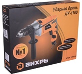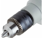 1100 Вт, число оборотов на холостом ходу 0-3000 об/мин, диаметр сверления сталь/дерево/бетон 10/25/13 мм, патрон ключевой 1,5-13 мм, вес - 2.3 кг.