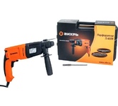 Потребляемая мощность: 990. Количество скоростей: односкоростной. Максимальная энергия удара: 3.4. Количество патронов в комплекте: один. Тип основного патрона: SDS-plus. Максимальный диаметр сверления (сталь): 13. Макс. диаметр сверления полыми коронками: 68. Максимальный диаметр сверления (дерево): 30. Жесткий кейс в комплекте: есть. Особенности: Эффективный щеточный реверс 3 режима работы + функция поворота долота Готов к работе – буры и долота в комплекте . Вес инструмента: 3. Длина сетевого кабеля: 2. Комплект поставки: Перфоратор Дополнительная рукоять Ограничитель глубины Ударные сверла 3 шт Долото 2 шт Руководство пользователя с гарантийным талоном и Инструкция по безопасности . Тип электропитания: от электросети. Габариты упаковки (ед) ДхШхВ: 0.29x0.42x0.11. Вес упаковки (ед): 4.84. Тип электрического двигателя: щеточный. Страна производства: Китай. Гарантия: 24 мес.. Число оборотов: 1200 об/мин. Частота удара: 5400 уд/мин. Диаметр сверления (бетон): 28 мм. Вес: 3 кг. Мощность: 990 Вт; энергия удара: