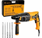 Мощность - 750Вт. Число ударов - 5200уд/мин. Сила удара - 2Дж. Макс. обороты - 1100об/мин. Количество скоростей - 1. Количество режимов - 3. Макс. диаметр бура - 40мм. Макс. диаметр сверления бетон/дерево/металл - 26/40/13мм. Тип патрона - SDS+. Возможности - наличие предохранительной муфты, режим долбления, регулировка числа оборотов.