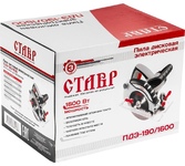 СТАВР ПДЭ-190/1600 Пила дисковая электрическая СТАВР ПДЭ-190/1600 Мощность 1600 Вт, 5000 об/мин. Диаметр диска 190 мм., посадочный диаметр диска 20 мм. Угол пропила до 45 градусов. Максимальная глубина пропила до 63 мм. Длина сетевого кабеля 2 м.