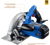 Пила циркулярная Sturm CS51190 — маневренный и мощный электроинструмент для осуществления поперечных или продольных пропилов в заготовках из древесины, фанеры и пластмассы. Подготовка данной модели к выполнению конкретной задачи облегчена электронной регулировкой оборотов. Практичности в применение пилы вносит литая прочная платформа из алюминия, что способствует исполнению качественных резов. В свою очередь функция поддержания оборотов под нагрузкой благоприятствует продуктивной работе. Долговечности инструмента содействуют усиленная пылезащита двигателя и плавный пуск. Удобно применять рычаг фиксации основания для настройки глубины и угла пиления в одно движение. В комплекте предусмотрены универсальный фланец под посадку диска 20/30 мм и параллельная направляющая в интересах реализации точных резов. Также в конструкции циркулярной пилы предусмотрена возможность стационарного использования.