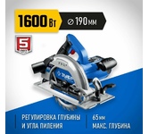 ЗУБР ПДП-65 Пила дисковая, 90°-65 мм, диск 190 мм, 1600 Вт, Профессионал