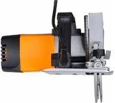 Потребляемая мощность (Вт) 2000. Диаметр диска (мм) 200. Число оборотов на холостом ходу (об/мин) 5500. Глубина пропила 90% (мм) 65. Ключ Да. Система быстрой замены щеток Да. Подключение пылесоса Да. Защитный кожух Да. Регулировка глубины пропила Да. Комплектация Пылеотвод Да. Струбницы Да. Комплект угольных щеток Да. Расклинивающий нож Да. Направляющая Да. Диск Да.