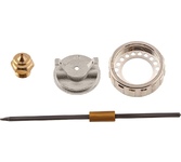 Ремкомплект для краскораспылителя Matrix 57392 состоит из 4 предметов: сопла диаметром 2 мм, иглы, форсунки и зажима сопла. Набор можно использовать для восстановления работоспособности краскопульта или расширения возможностей его использования. Совместимые краскопульты Matrix 57314, 57315, 57316, 57317. Преимущества Надежность — элементы набора изготовлены из прочной стали и латуни, поэтому устойчивы к воздействию сжатого воздуха. Эффективное управление подачей краски — игла позволяет мгновенно открывать и закрывать сопло. Удобное окрашивание небольших деталей — форсунка диаметром 33 мм обеспечивает подачу узкой струи раствора.