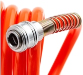Шланг пневматический спиральный PU 15/8 предназначен для подачи сжатого воздуха от компрессора к пневмоинструменту. Спиральная структура шланга обеспечивает удобство использования и исключает образование перегибов и деформации. Не теряет эластичность при низких температурах. Оснащен быстросъемными штуцерами, обеспечивающими легкое присоединение и надежное крепление. Длина – 15 м.