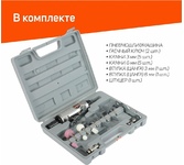 Пневмошлифмашина PATRIOT PG 160 с набором, 16 предметов, надежна и практична в использовании. Подходит для шлифования тонких сварных швов, обработки контуров и полирования поверхностей. Диаметр воздушного штуцера, дюйм 1/4F, Комплектация кейс/чемодан, Тип соединения рапид (EURO), Давление, атм 6, Расход воздуха, л/мин 113, Число оборотов, об/мин 22000, Размер цанги, мм 3, 6.