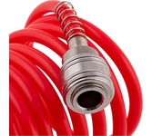 Спиральный воздушный шланг Matrix 57002 длиной 5 м, с быстросъемными соединениями, используется для подключения пневмоинструментов к компрессору. Изготовлен из легкого полиэтилена, за счет чего даже длительная работа не вызывает усталости. Имеет форму спирали, поэтому его не нужно скручивать после работы. Рукав пригодится в автосервисе, слесарной мастерской, а также во время отделочных работ.ПреимуществаБыстроразъемное соединение ускоряет подключение пневмоинструментов, что экономит время и силы мастера.Максимальное давление составляет 18 бар, что позволяет использовать шланг с мощным компрессорным оборудованием.Соединители имеют антикоррозийное покрытие, поэтому не ржавеют и служат долго.Увеличенная толщина шланга повышает сопротивляемость нагрузкам, устойчивость к высокому давлению и механическим воздействиям.