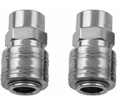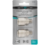 Универсальная муфта Stels 57050 типа «мама» с посадочным размером 1/4 " используется для быстросъемного соединения пневматического шланга с компрессором и пневмоинструментом. Подключение не занимает много времени, с ним справится даже начинающий пользователь.Преимущества:Муфта изготовлена из высокопрочной стали, что гарантирует высокую надежность пневматической системы.Компрессор с пневмоинструментом стыкуются герметично, исключены потери сжатого воздуха.В комплект поставки входят 2 муфты.
