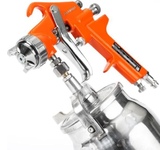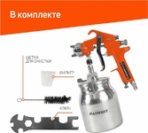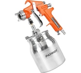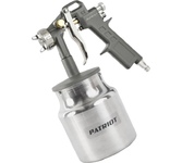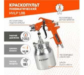Пневмокраскораспылитель PATRIOT LV 162А, Расход воздуха: 400 л/мин; Объем бачка для краски: 0.5 л. верхний; Давление: 3.0-4.0 бар; Диаметр сопла: 1,5 мм; Ширина факела: 120-220 мм; Соединение: быстросъем.